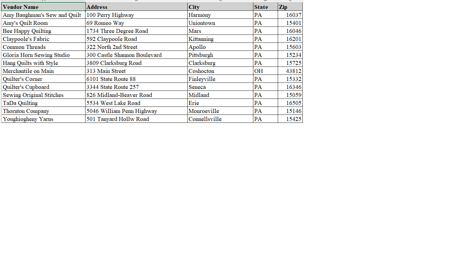 2026 Quilt Show Vendors List